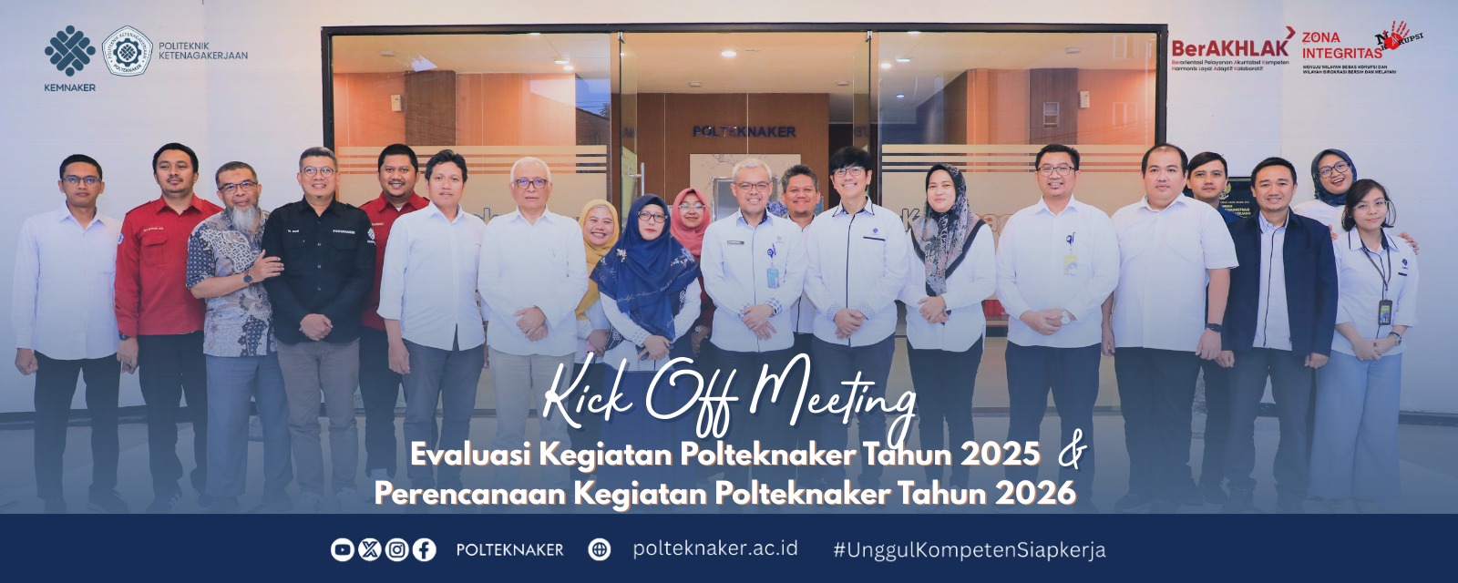 Jakarta (07/01) — Politeknik Ketenagakerjaan (Polteknaker) melaksanakan agenda rapat “Kick Off Meeting” Program Kegiatan Politeknik Ketenagakerjaan Tahun 2026 dan Evaluasi Pelaksanaan Kegiatan Politeknik Ketenagakerjaan Tahun 2025, yang dipimpin oleh Sekretaris Jenderal Kementerian Ketenagakerjaan, Dr. Cris Kuntadi, S.E., M.M. Kegiatan yang berlangsung di Ruang Rapat Kolaboratif ini menjadi forum bersama untuk meninjau capaian kinerja selama tahun 2025 sekaligus menyusun arah dan program strategis Polteknaker pada tahun 2026.